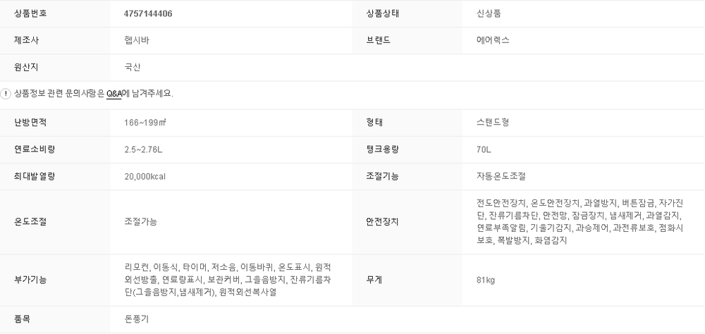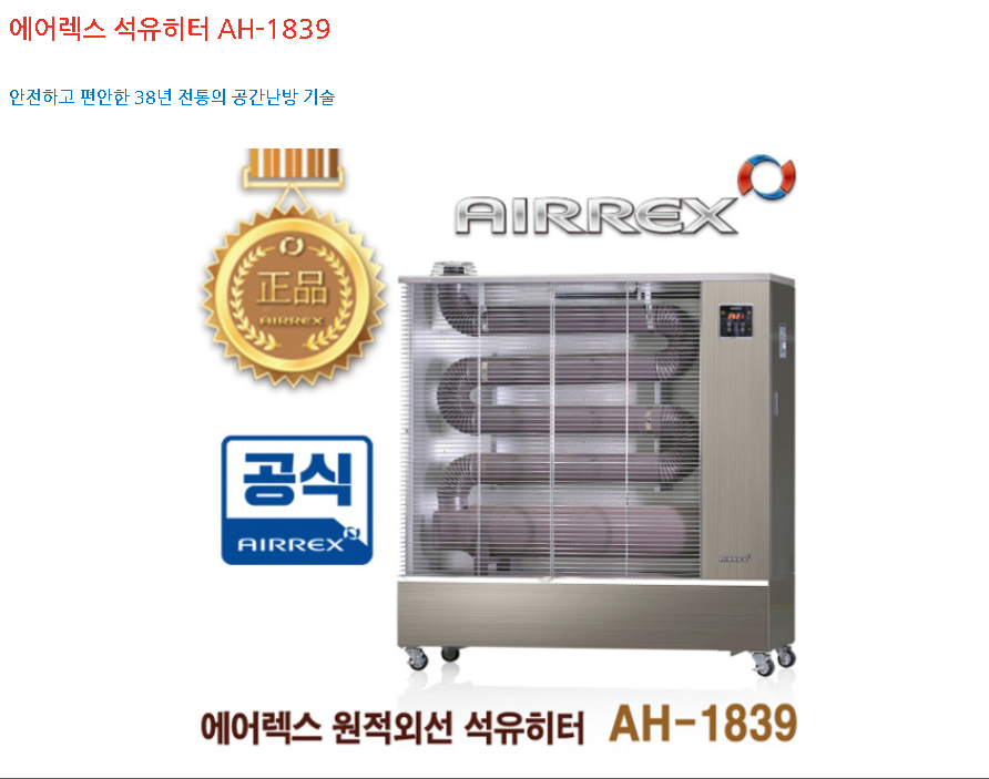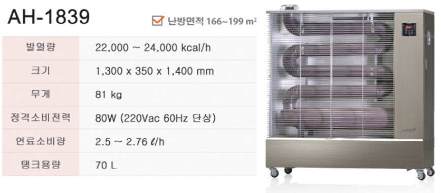 헵시바 에어렉스 AH-1839 (50-60평형) 원적외선 석유히터 돈풍기 석유난로