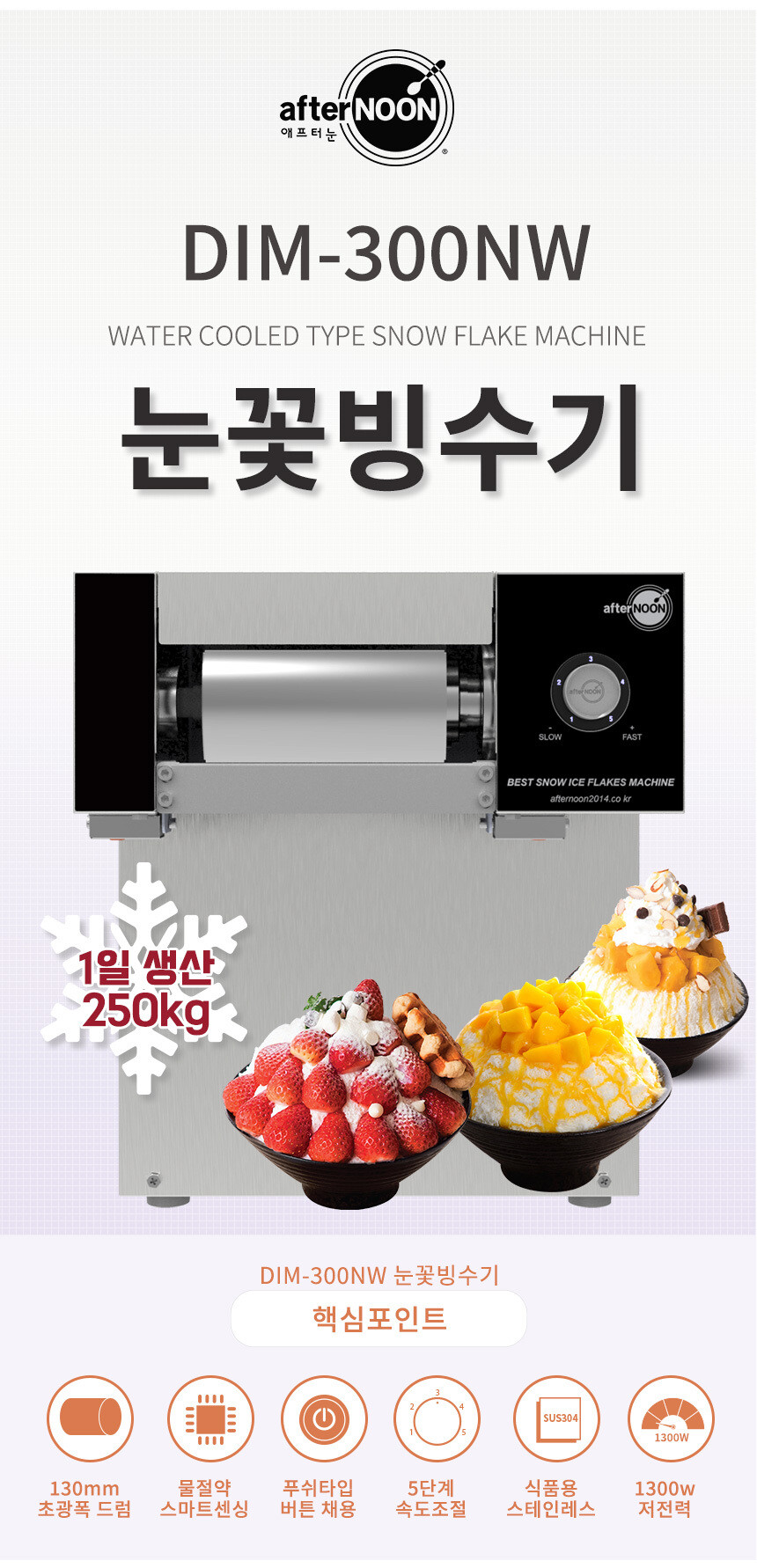 애프터눈 DIM-300NW 카페 눈꽃빙수기계 팥빙수기계 수냉식 빙수전문점용