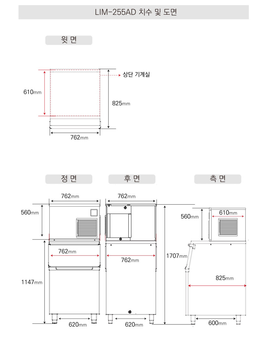 라셀르 [LIM-255AD] (+저장통 대[大]) 얼음 생산량 248kg/일 업소용. 영업용. 카페용. 제빙기. 반달얼음. 공랭식. 모듈러형.