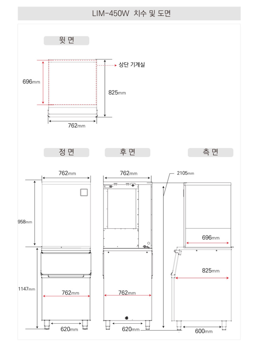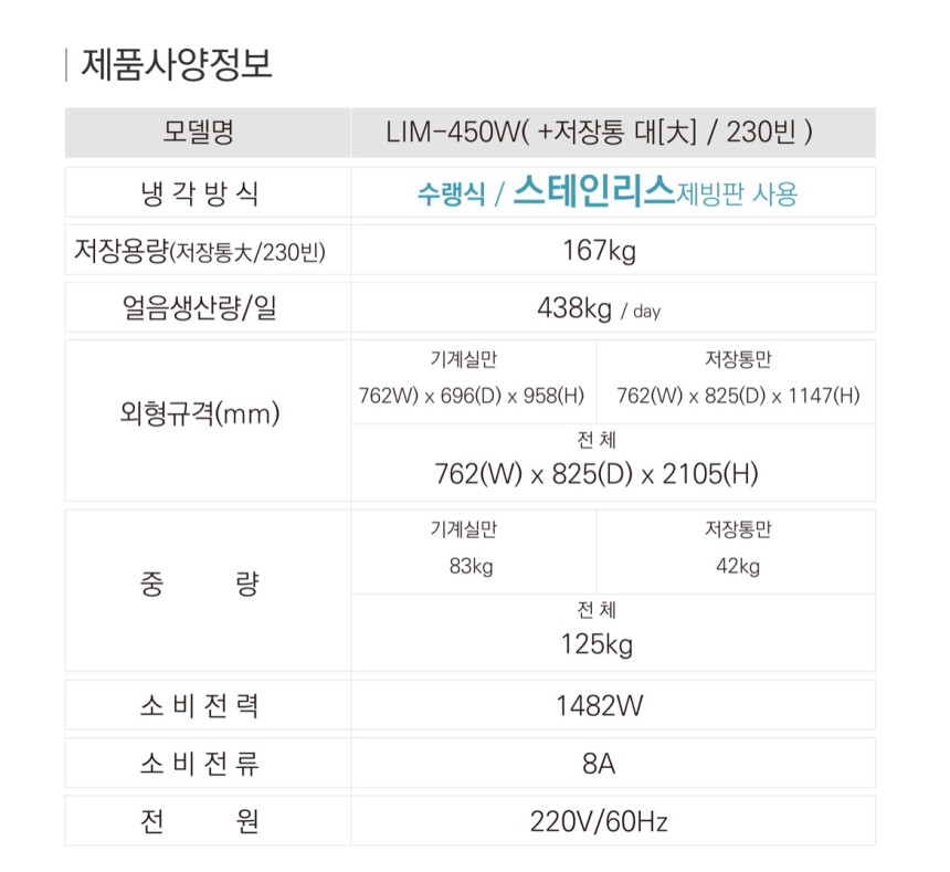 라셀르 [LIM-450W] (+저장통 대[大]) 얼음 생산량 438kg/일 업소용. 영업용. 카페용. 제빙기. 반달얼음. 수랭식. 모듈러형.