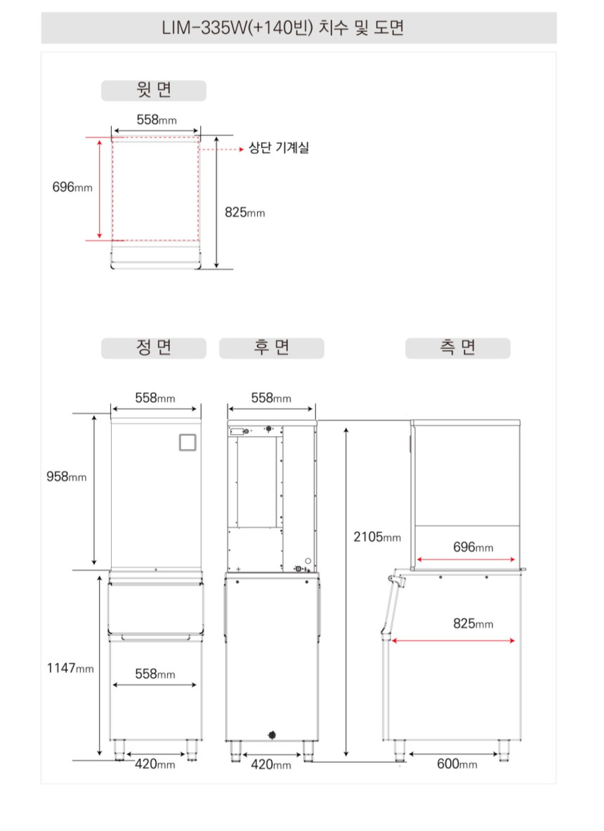 라셀르 [LIM-335W] (+저장통 소[小]) 얼음 생산량 347kg/일 업소용. 영업용. 카페용. 제빙기. 반달얼음. 수랭식. 모듈러형.