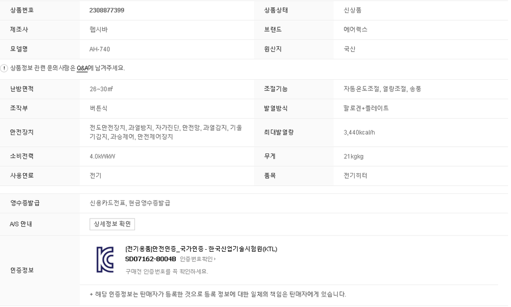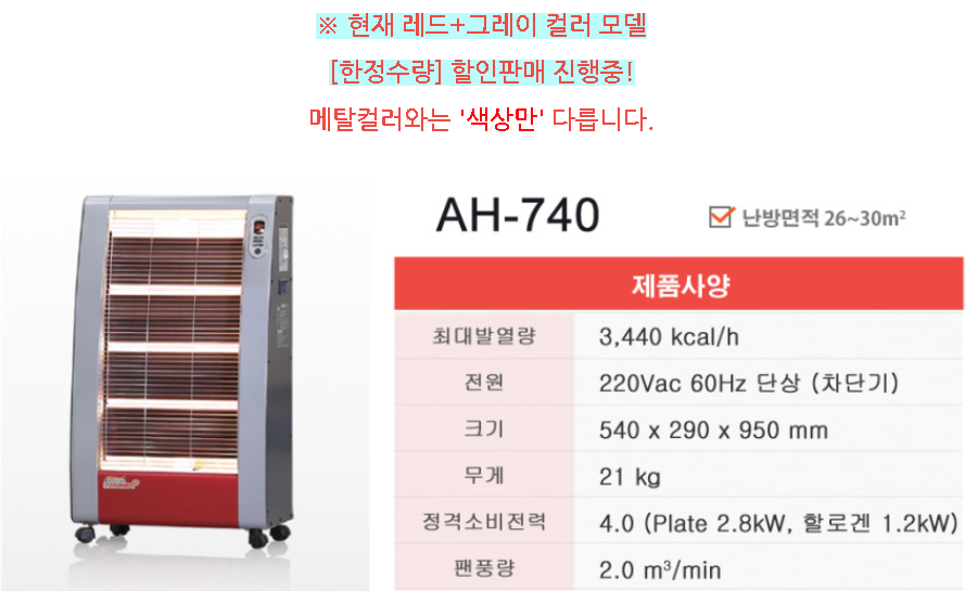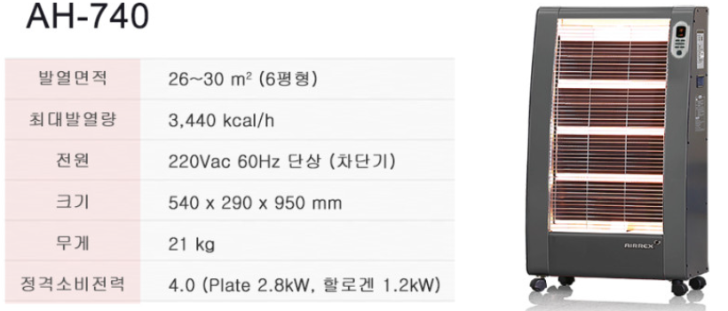 헵시바 에어렉스 AH-740 (9평형) 원적외선 플레이트 전기히터