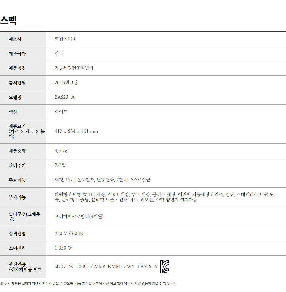 BAS25-A 코웨이 스스로케어 리모트 비데 *월