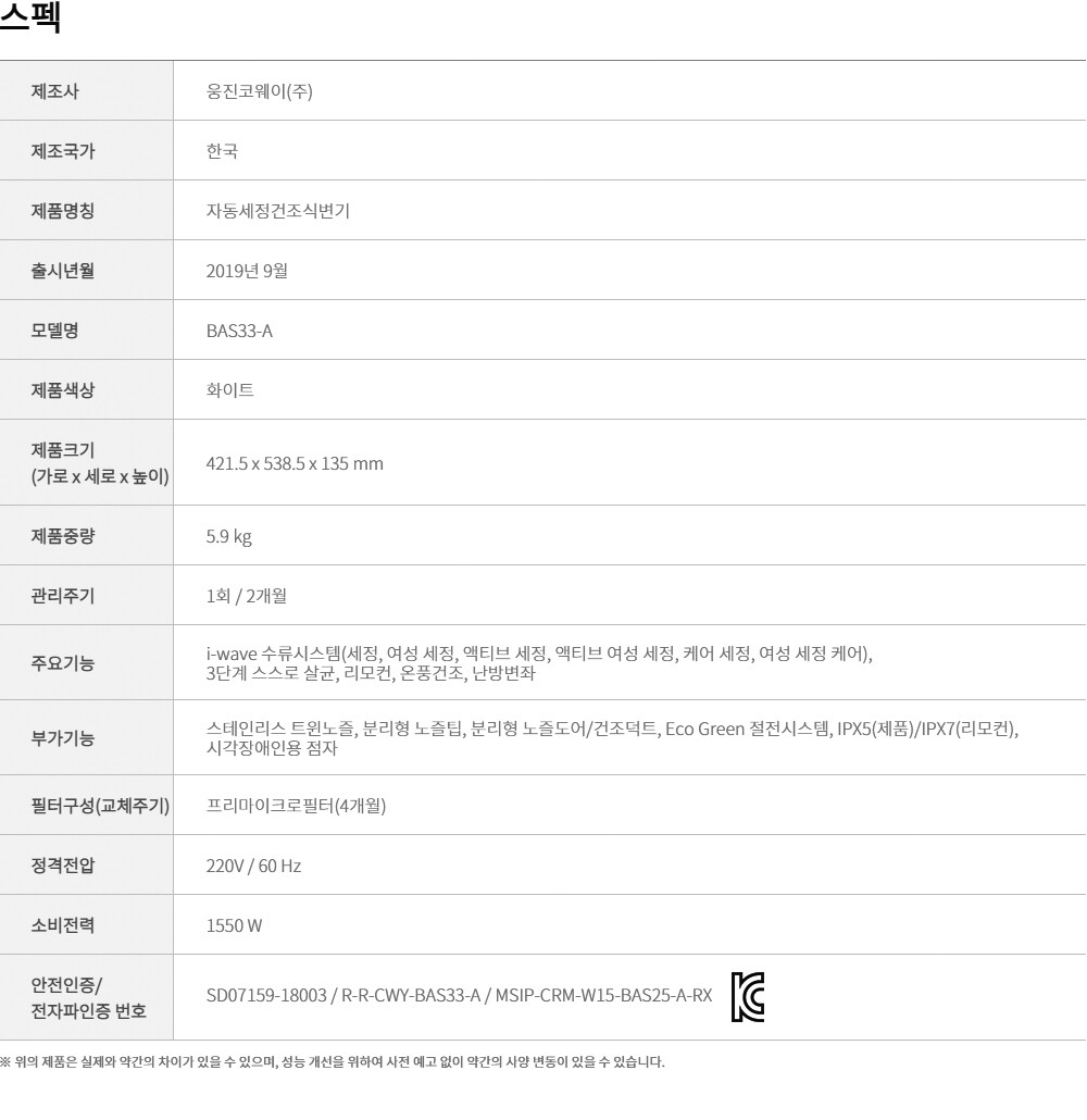 BAS33-A 코웨이 스타일케어 리모트 비데 *월