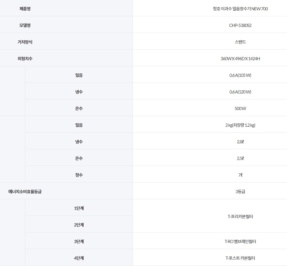CHP-5380S2 청호나이스 NEW 700 얼음정수기 *월