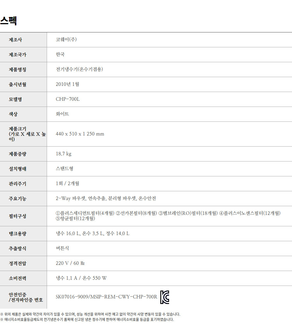 CHP-700L 코웨이 대형 스탠드 정수기 *월