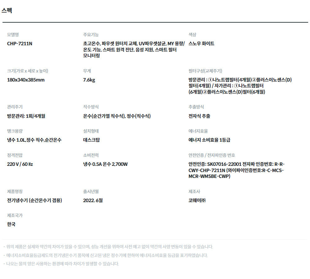 CP-7211N 코웨이 아이콘 냉정수기 *월
