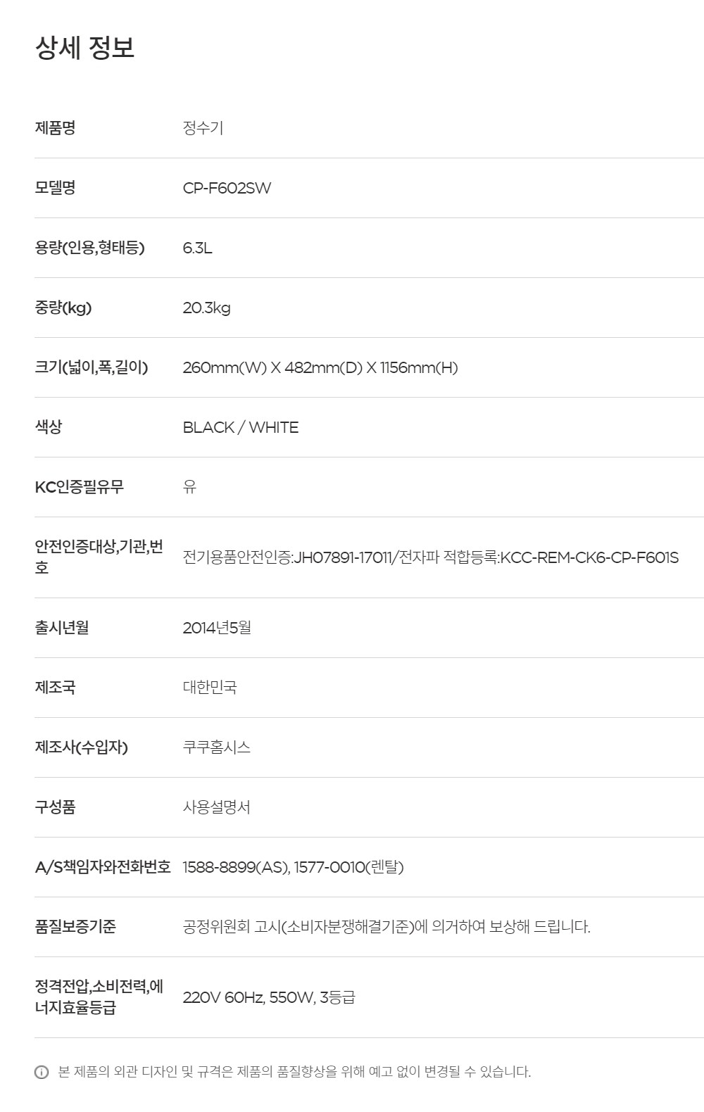 CP-F602SW 쿠쿠 내추럴워터 스탠드 정수기 *월