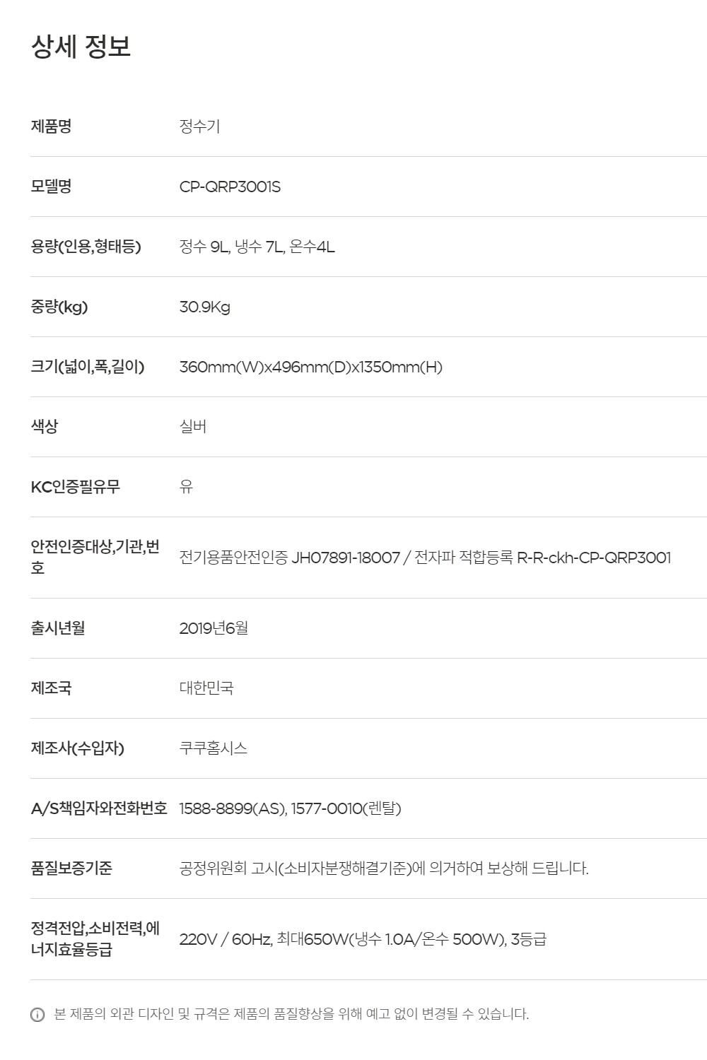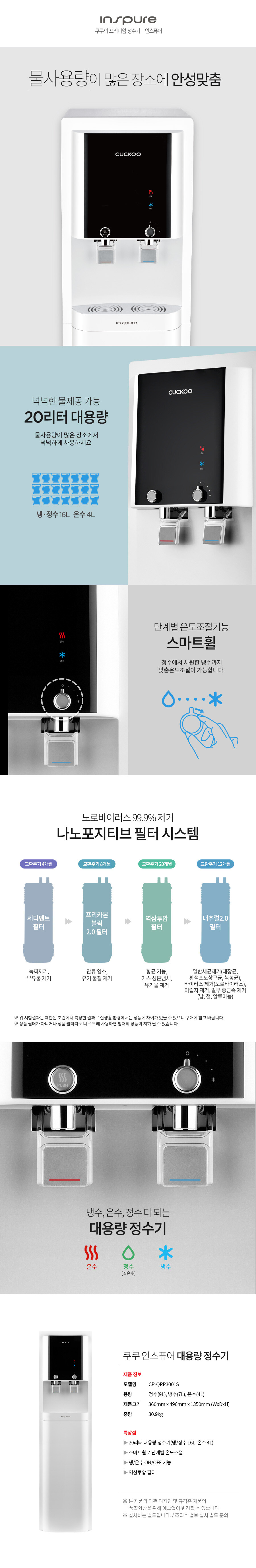 CP-QRP3001S 쿠쿠 대용량 RO 정수기 *월