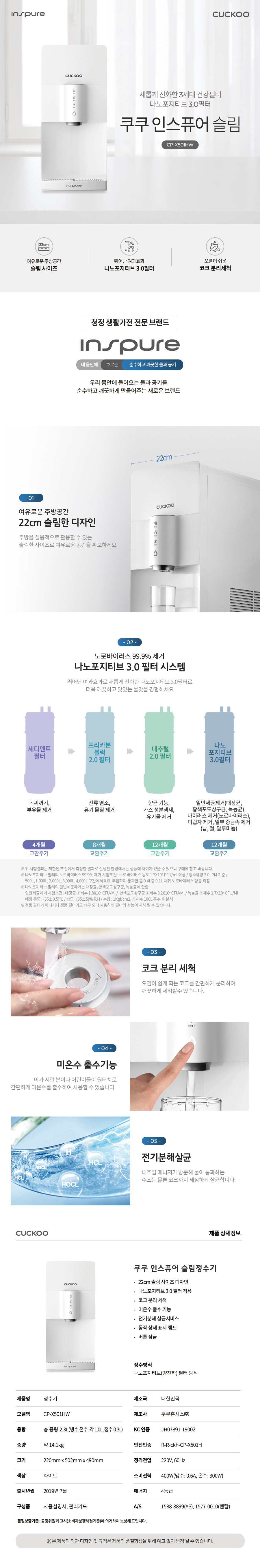 CP-X501HW 쿠쿠 인스퓨어 슬림 하프 냉온정수기 *월