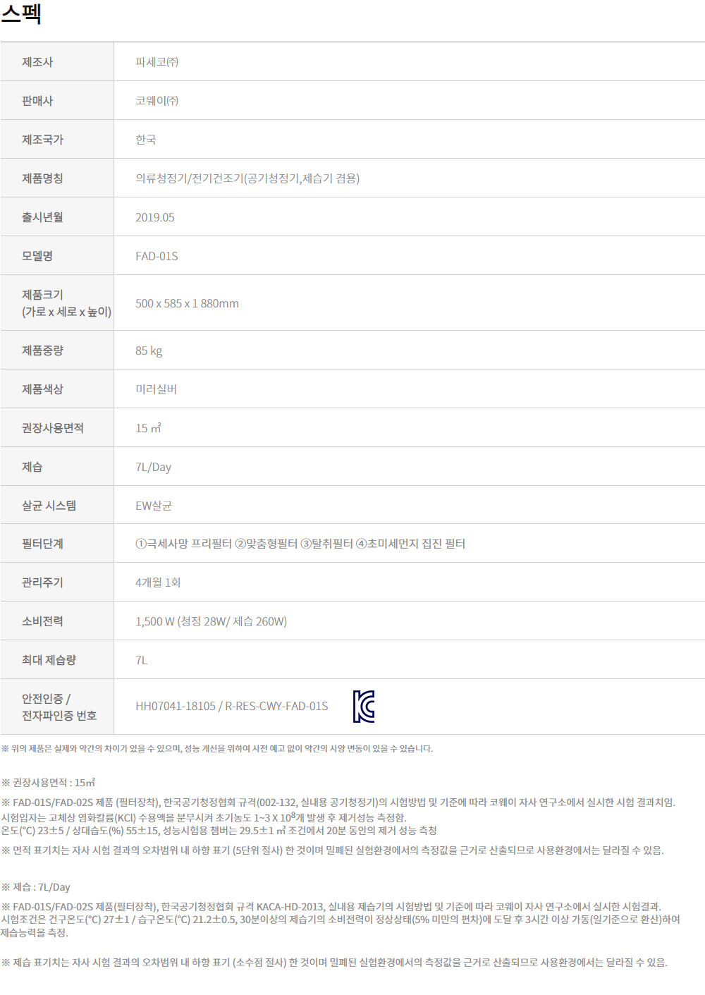FAD-01S 코웨이 의류청정기 더블케어 *월