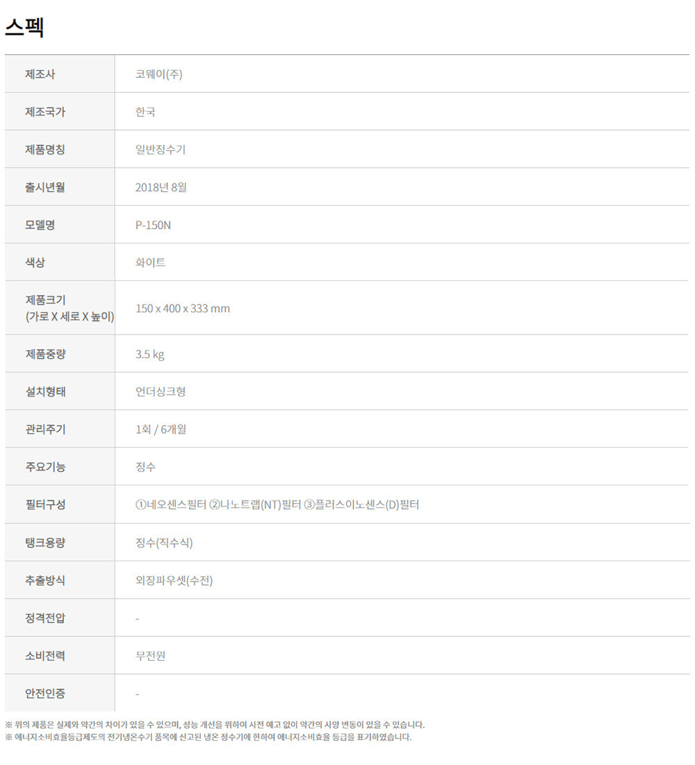 P-150N 코웨이 빌트인 정수기 *월