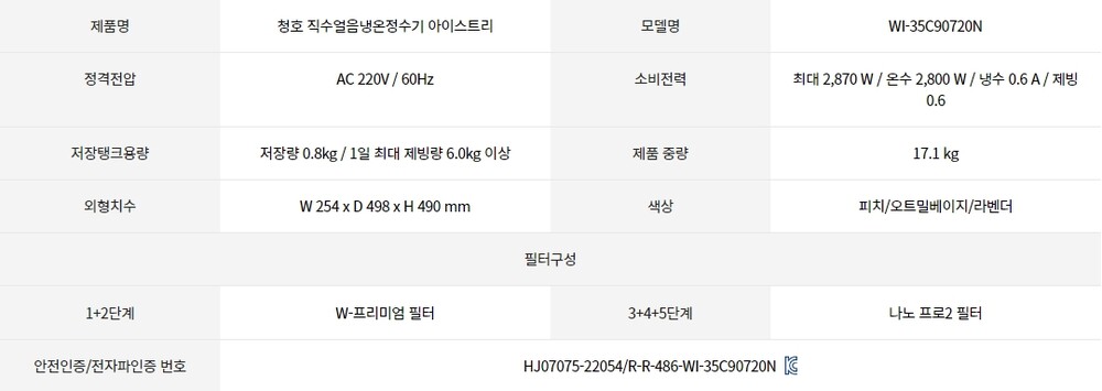 WI-35C90720N 청호나이스 아이스트리 냉온얼음정수기 *월