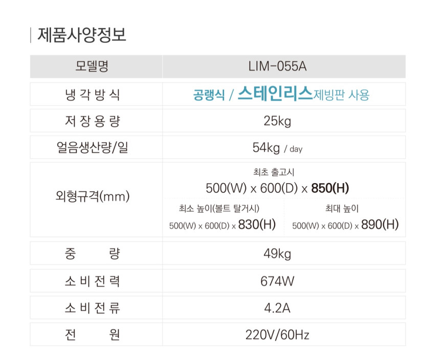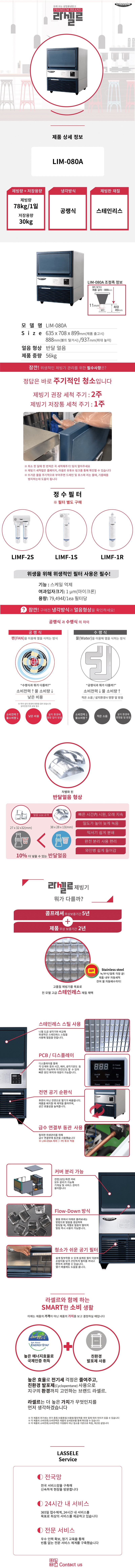 라셀르 [LIM-080A] 얼음 생산량 78kg/일 업소용. 영업용. 카페용. 제빙기. 반달얼음. 공랭식. 테이블형.