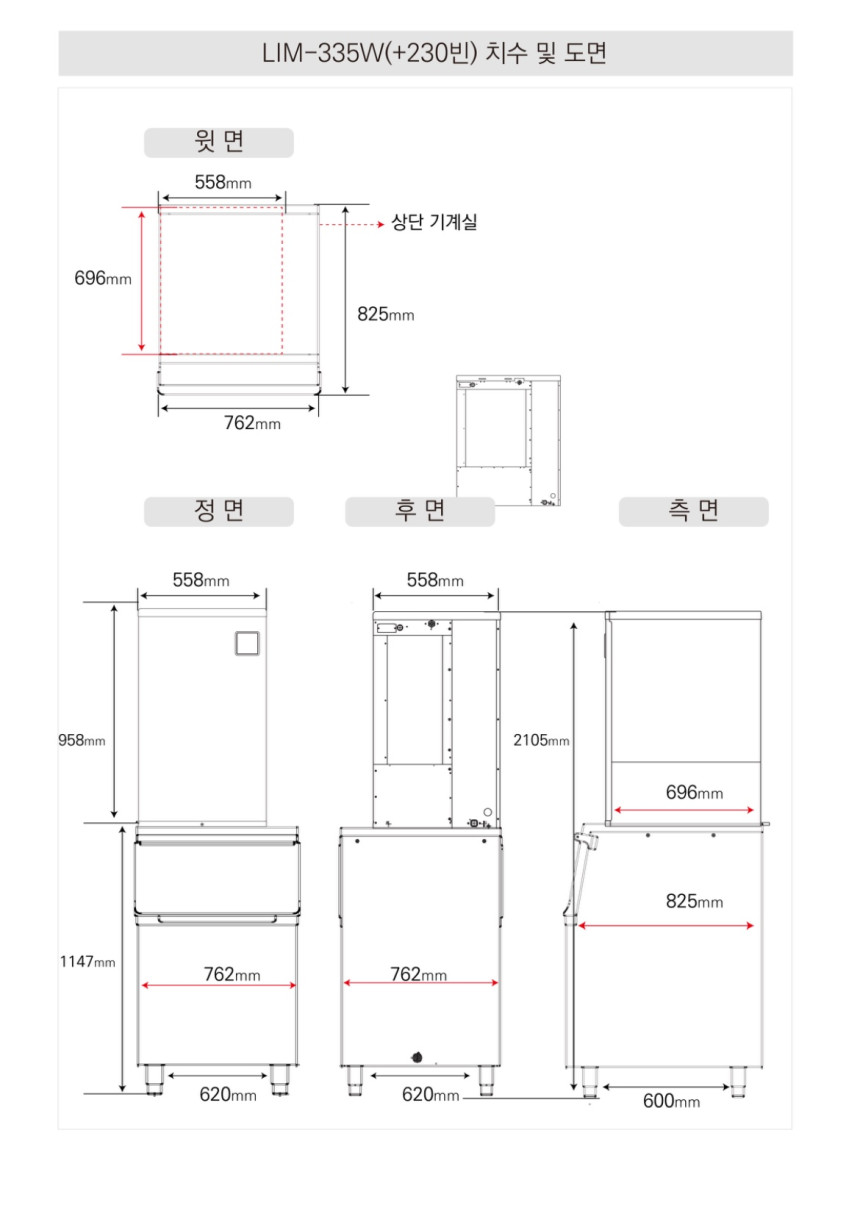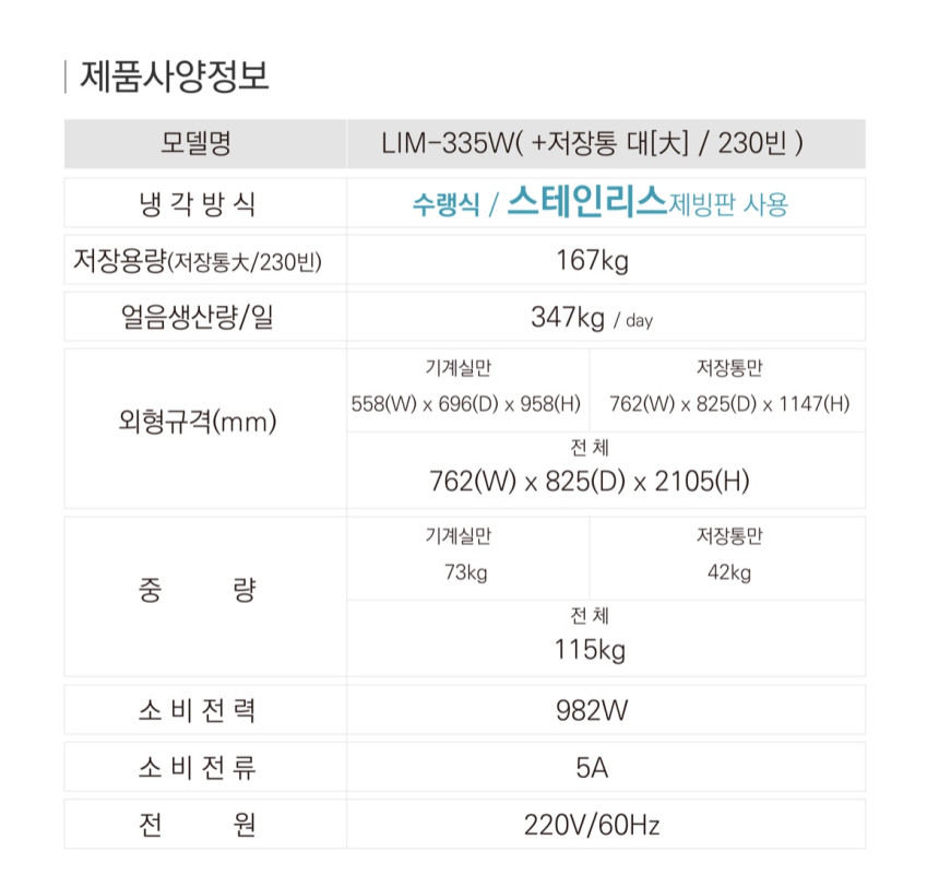 라셀르 [LIM-335W] (+저장통 대[大]) 얼음 생산량 347kg/일 업소용. 영업용. 카페용. 제빙기. 반달얼음. 수랭식. 모듈러형.