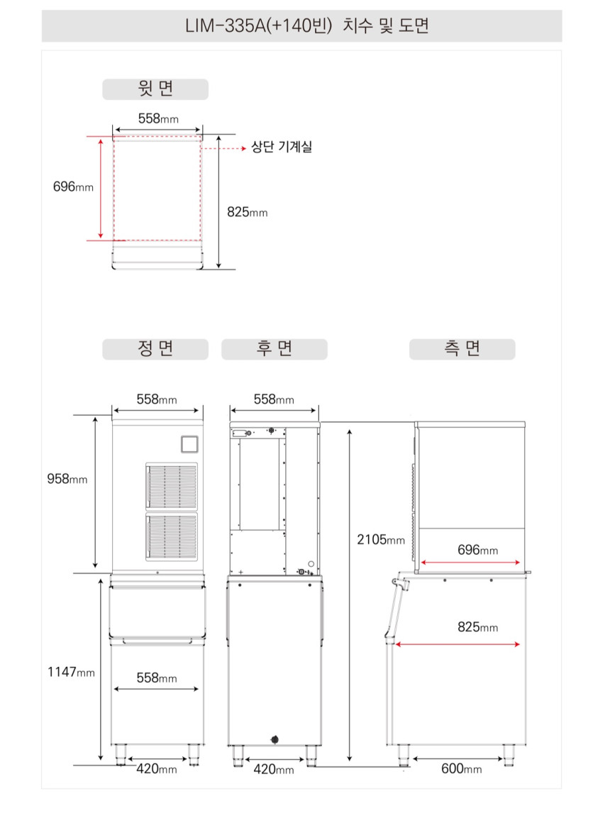 라셀르 [LIM-335A] (+저장통 소[小]) 얼음 생산량 331kg/일 업소용. 영업용. 카페용. 제빙기. 반달얼음. 공랭식. 모듈러형.