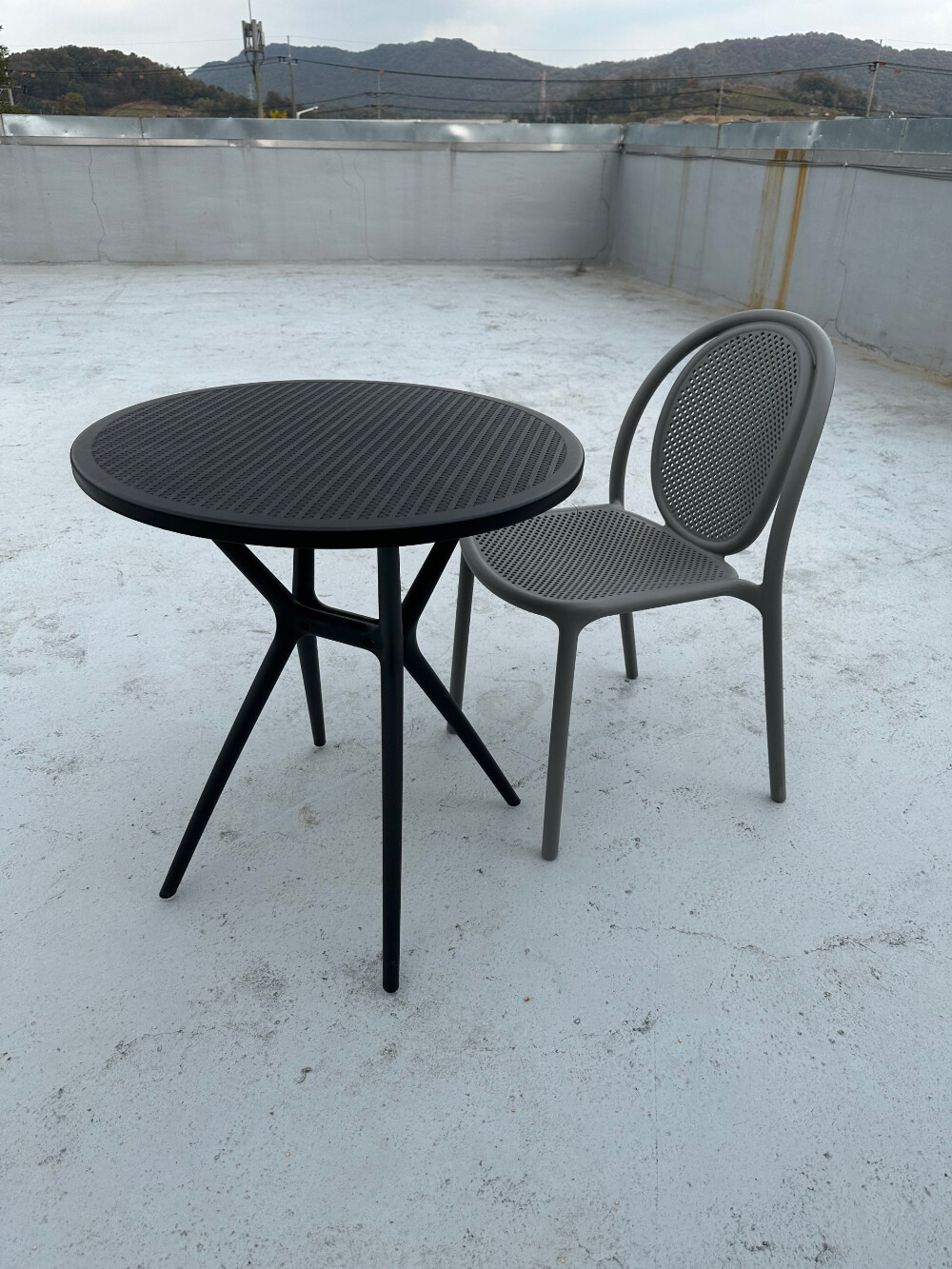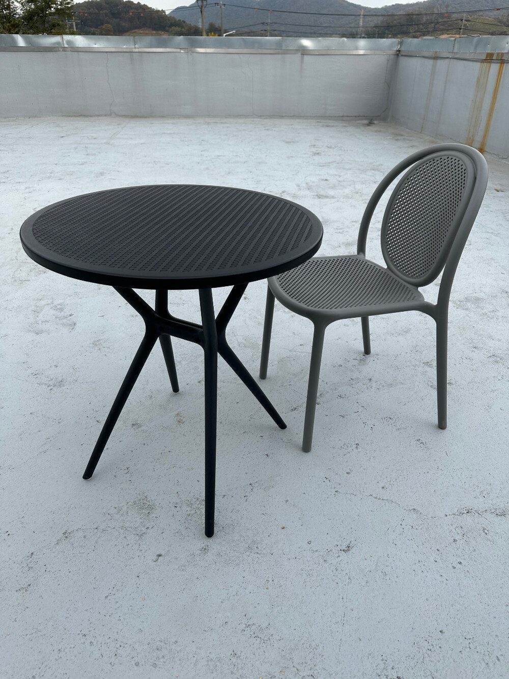 야외 플라스틱 라탄무늬 테이블 검정
